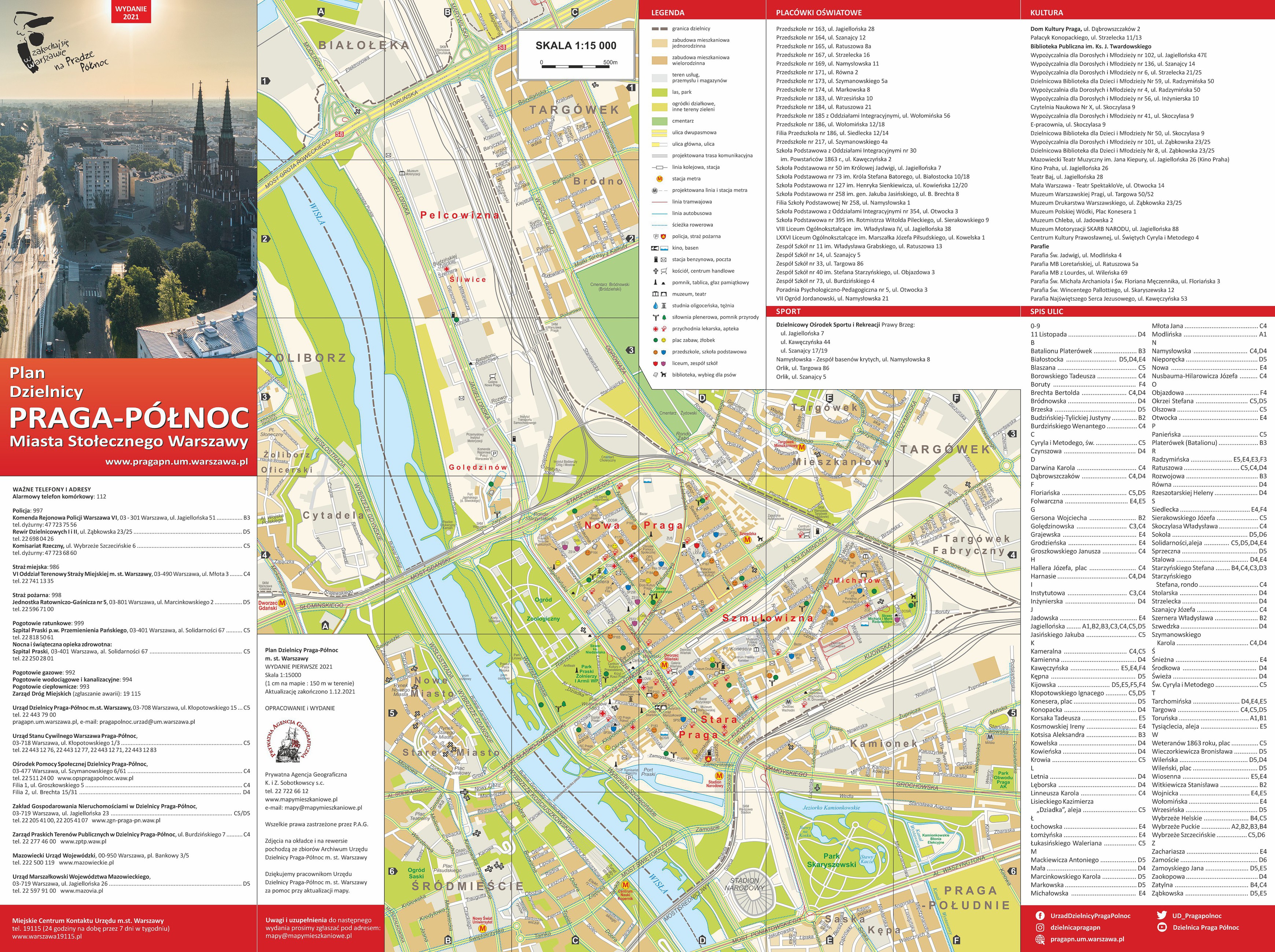 Wydaliśmy też drukiem serię szczegółowych planów dzielnic Warszawy. Dotychczas ukazały się plany Żoliborza, Bielan, Białołęki, Woli, Wilanowa i Pragi- Południe, a zupełnie niedawno plan Pragi-Północ.